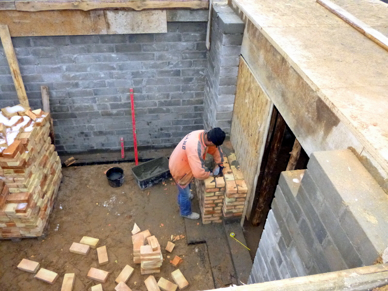 Jednocześnie chłopcy pracowicie zasypują i zagęszczają piasek w tych częściach fundamentów, w których nie będzie piwnic.