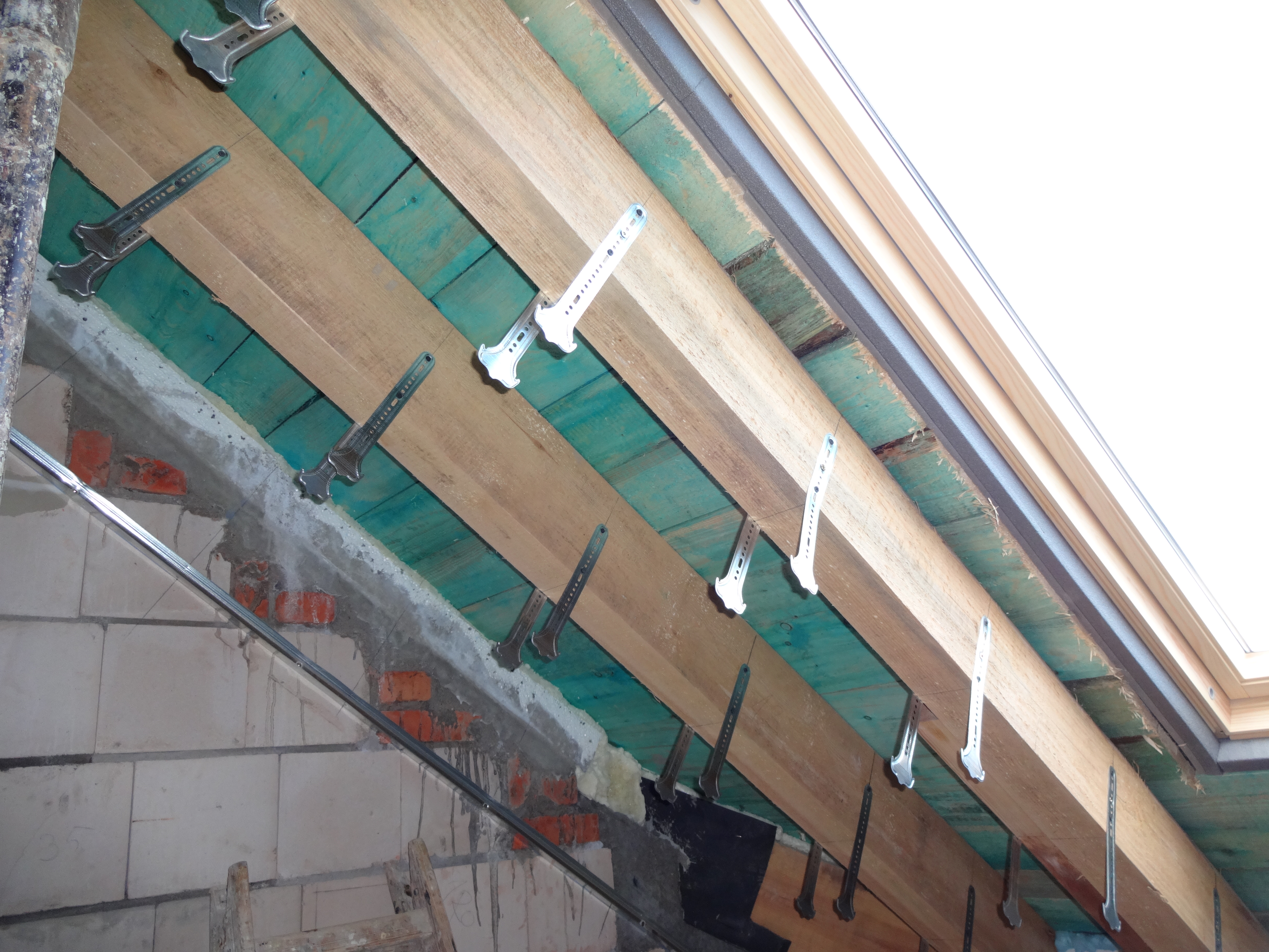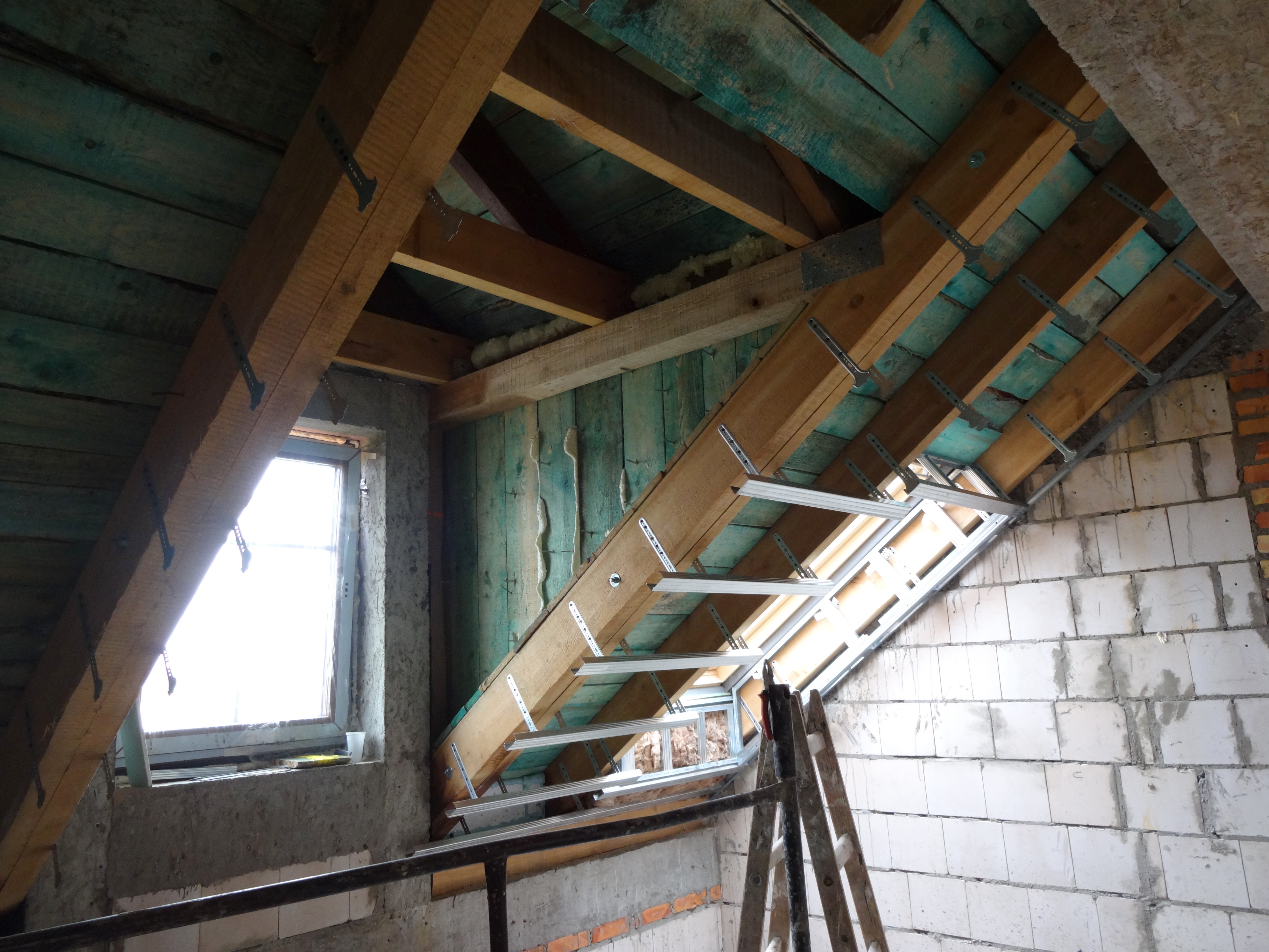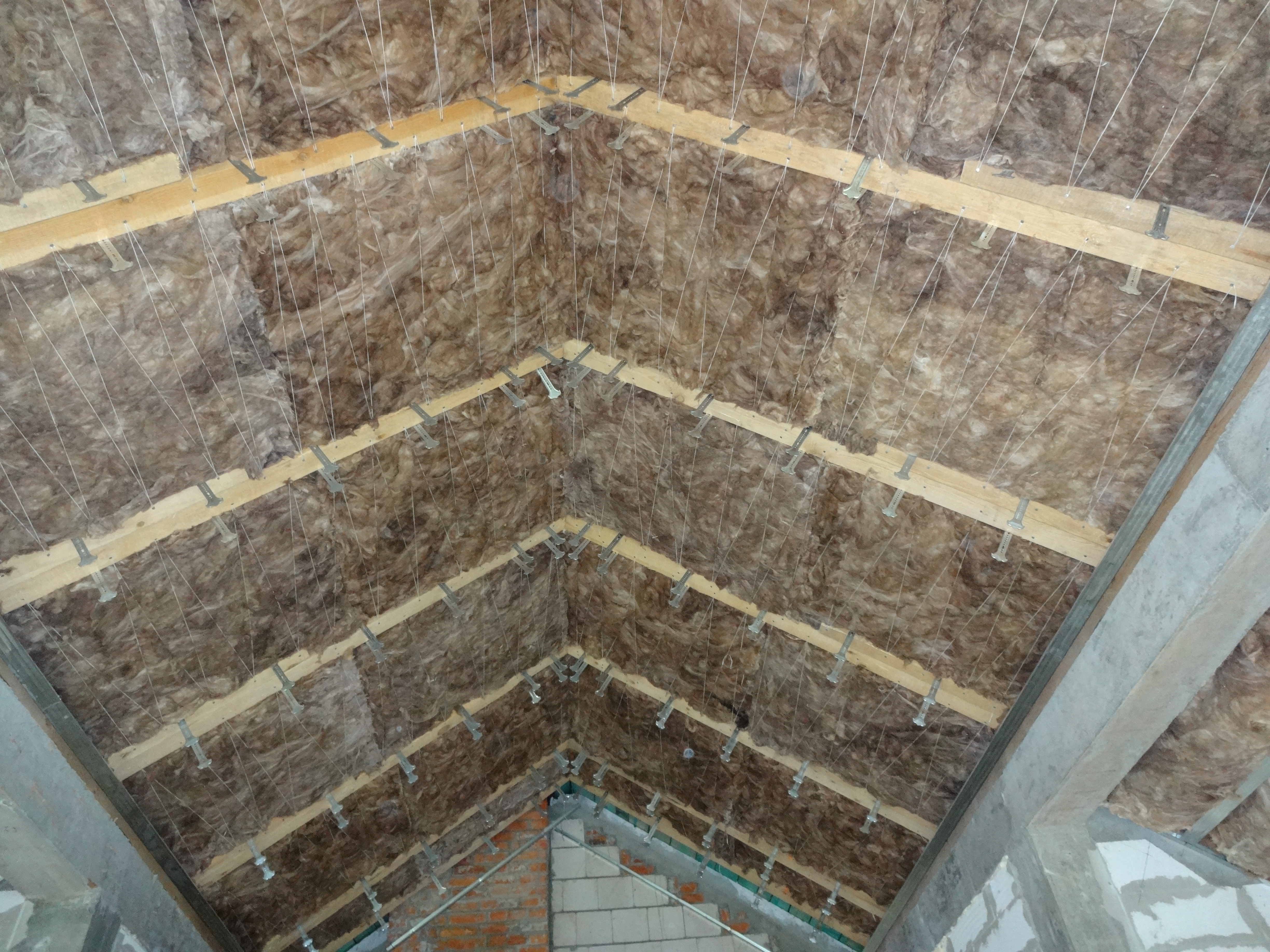 Cały czas trwają prace przy starannym docieplaniu budynku dwiema 15-centrymetrowymi warstwami wełny mineralnej. To trudna praca wymagająca dokładnego rozmieszczenia systemu mocowań i profili, a następnie zamocowaniu warstw wełny. Przed jej zapyleniem trzeba się chronić specjalnym strojem.