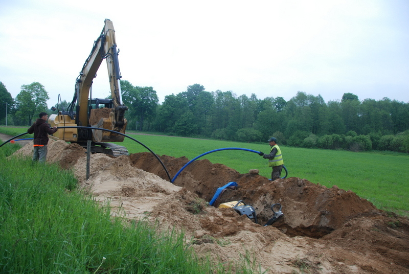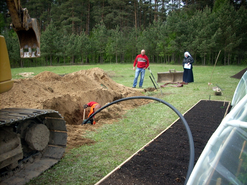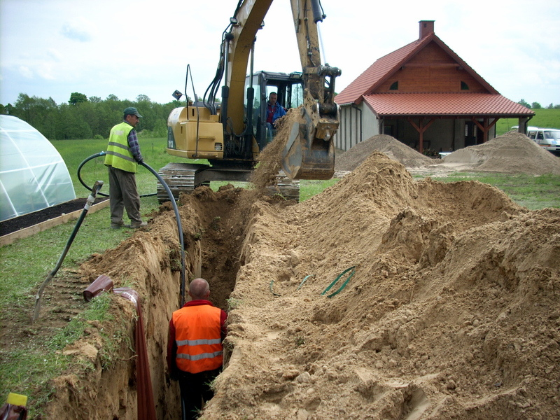 Dziś na Tęczowej Farmie św. Józefa miał miejsce prawdziwy „taniec koparek”. Prowadzimy przyłącze wodne i kanalizacyjne! Mamy wielkie szczęście, bo w naszej wiosce Jeziorowskie akurat w tym roku powstaje gminna sieć wodna i kanalizacyjna. Postanowiliśmy czym prędzej wybudować ponad dwustumetrowy odcinek przyłącza do najbliższego punktu sieci. Będziemy mieć już za sobą trudne wykopy. Teraz tylko trzeba dobudować do tej instalacji dom…