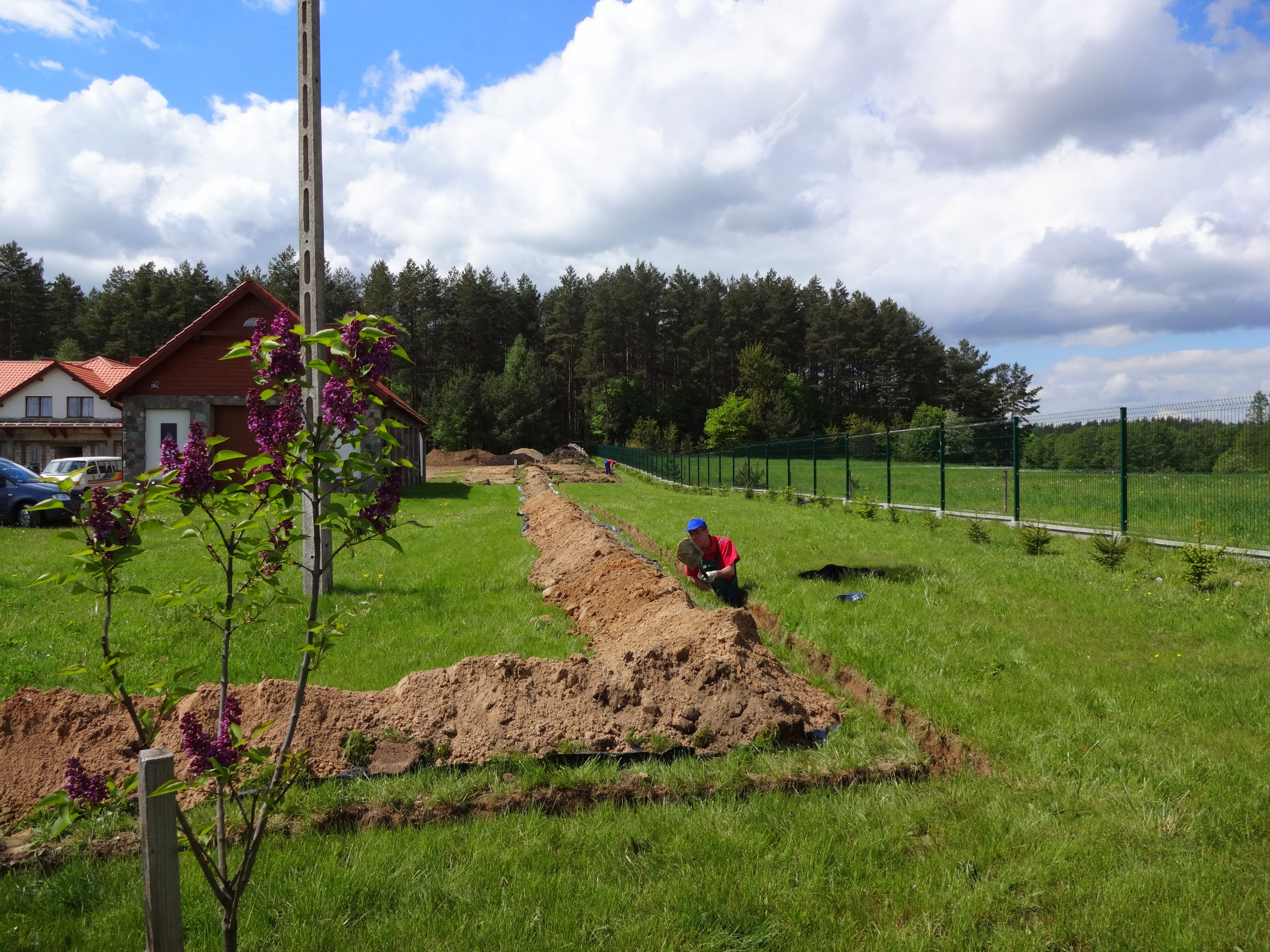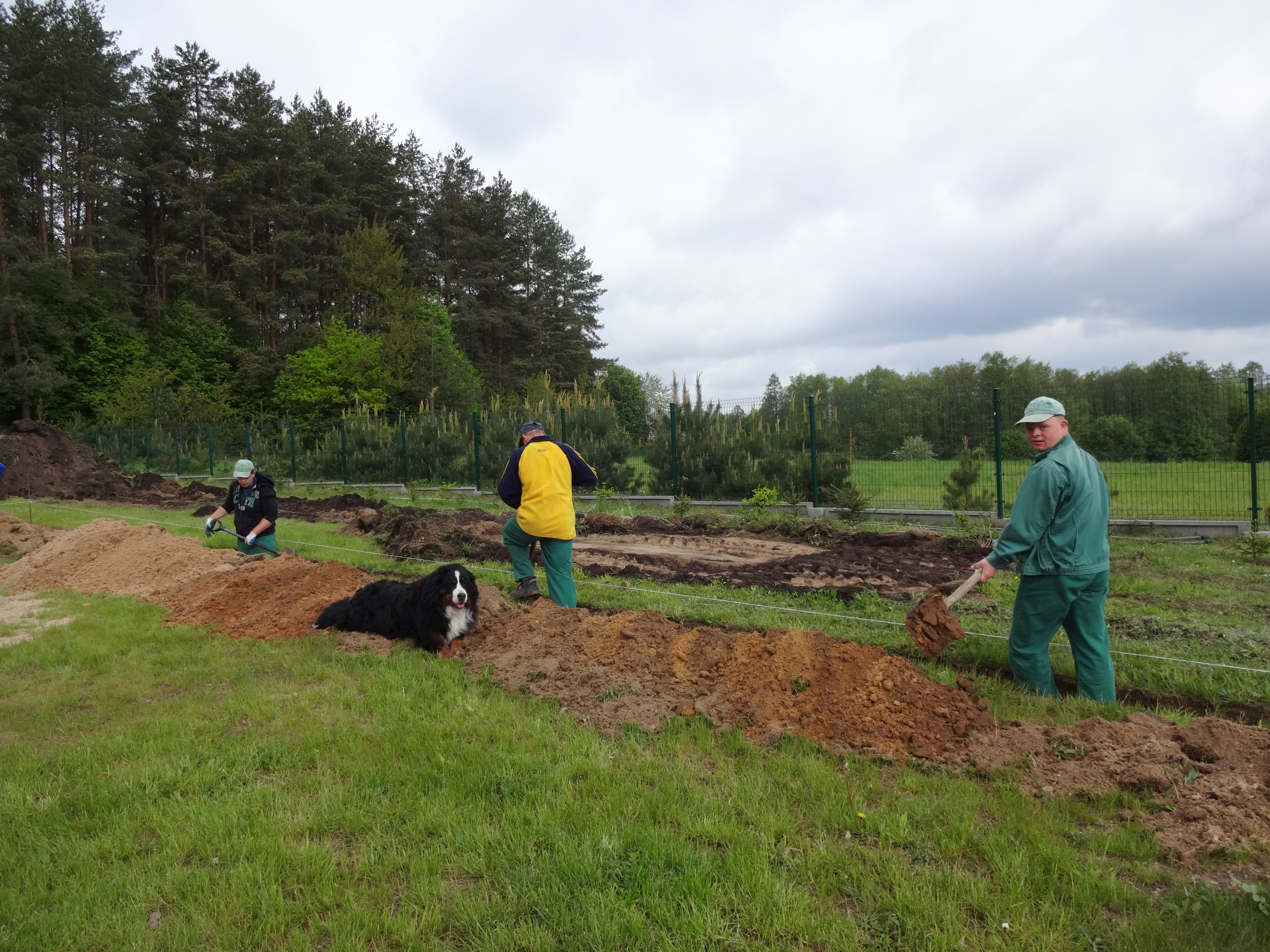 Ubiegłoroczne doświadczenia z uprawą warzyw skłoniły nas do założenia prawdziwego ogrodu warzywnego. Niezawodny pan Józef Gajek dostarczył nam znaczącej ilości czarnej ziemi. Pan Kostek z użyciem traktora zebrał warstwy darni, a chłopcy pod kierunkiem Grzegorza i pani Basi wykopali rowy pod rury nawadniające, które zaraz zasypali i obsiali trawą. To początek prawdziwego ekologicznego ogrodu na farmie. naszym nowym pomocnikiem w koszeniu hektara trawy stał się nowy rider Izydorek.