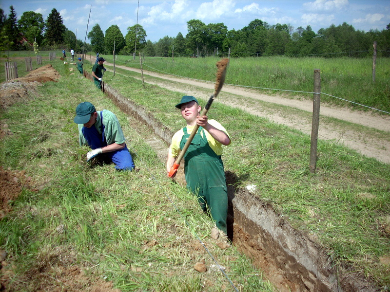 Nie trzeba było drogo płacić za pracę koparki. Wszystko zostało wykonane ręcznie. Entuzjazm, jaki mają w takich pracach chłopcy napawa nadzieją na przyszłość budowy. Oczywiście nie może zabraknąć chwil odpoczynku, posilenia się i wesołej zabawy.