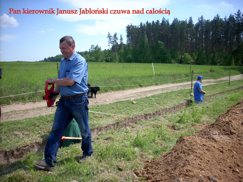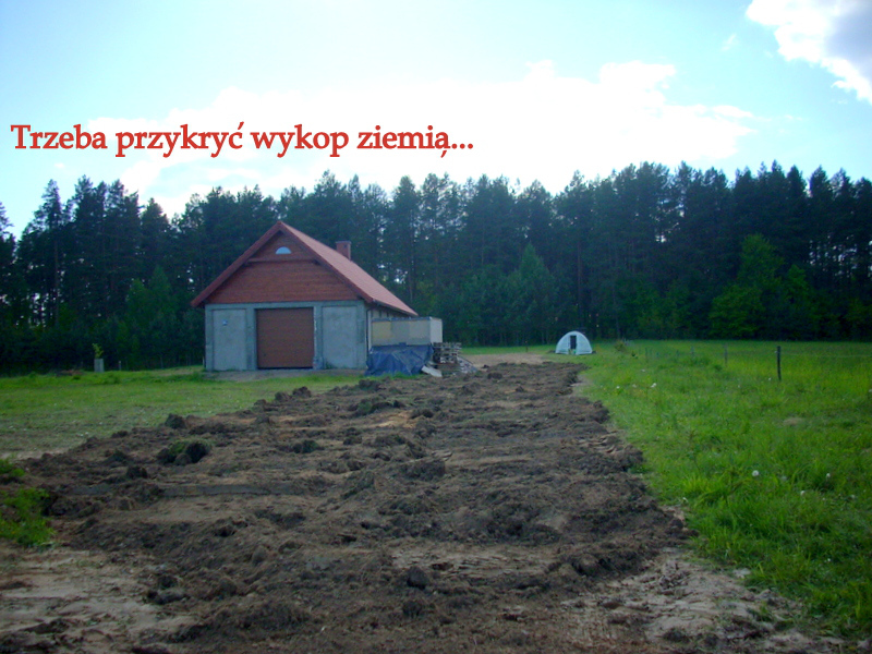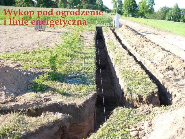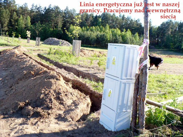 Na zlecenie Zakładu Energetycznego firma zewnętrzna doprowadziła w tym tygodniu do granic naszej działki przyłącze energetyczne. Dużą życzliwością wykazali się nasi sąsiedzi, państwo Dadurowie, którzy wyrazili zgodę na przekopanie swojego ogródka celem przeprowadzenia podziemnej linii od słupa, który stoi na ich działce. Bardzo dziękujemy! Jesteśmy też wdzięczni państwu Jasińskim, którzy zgodzili się na wykonanie przyłącza wodno-kanalizacyjnego na ich polu. Bardzo się cieszymy, że mamy dobrych sąsiadów! Nasza niezawodna ekipa chłopaków pod wodzą p.Andrzeja, p.Wieśka i p.Grzegorza dokonała reszty wewnątrz działki: