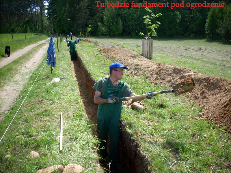 - Wykonany jest już cały wykop i przygotowane zbrojenie pod fundament ogrodzenia od wschodniej, frontowej strony działki.