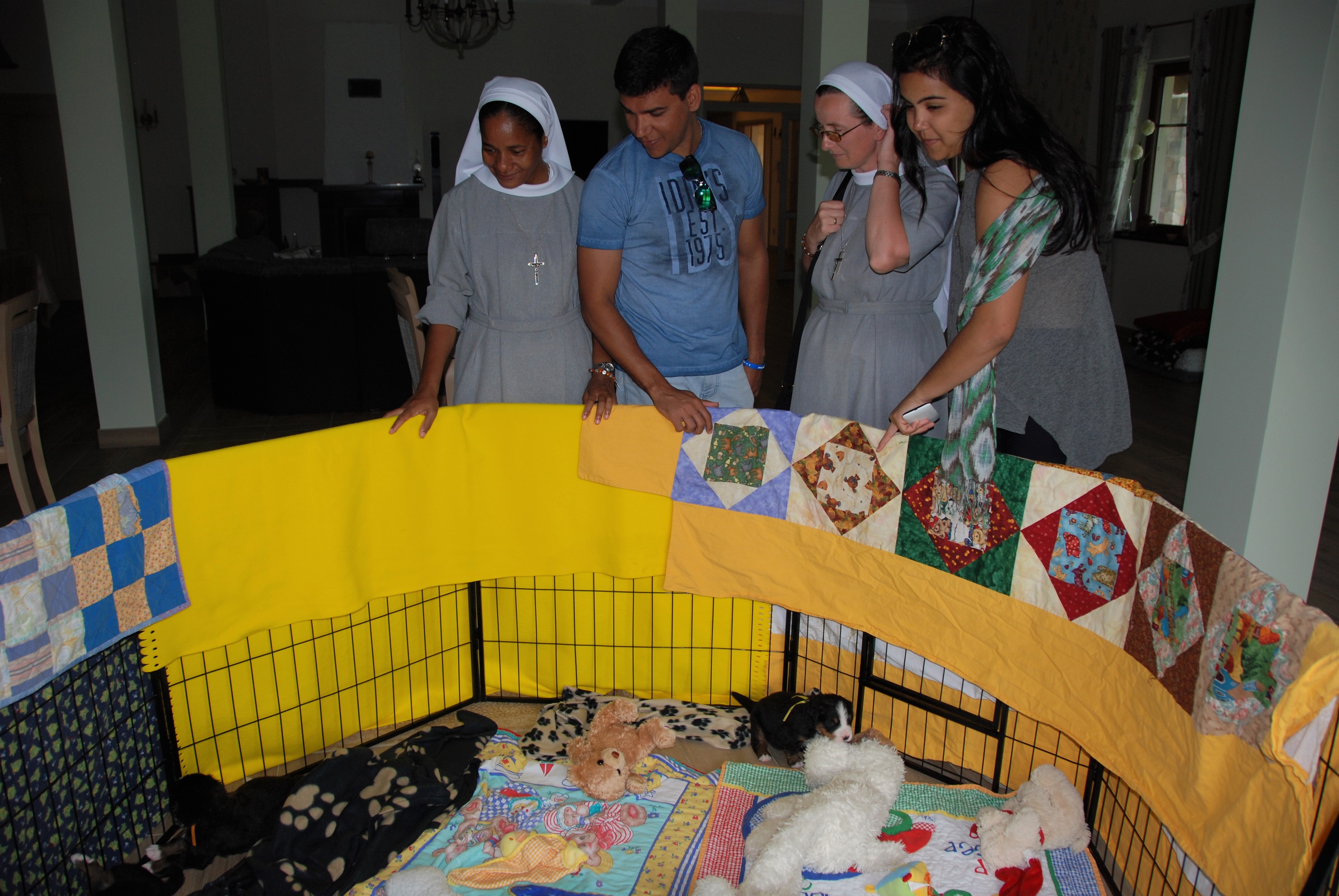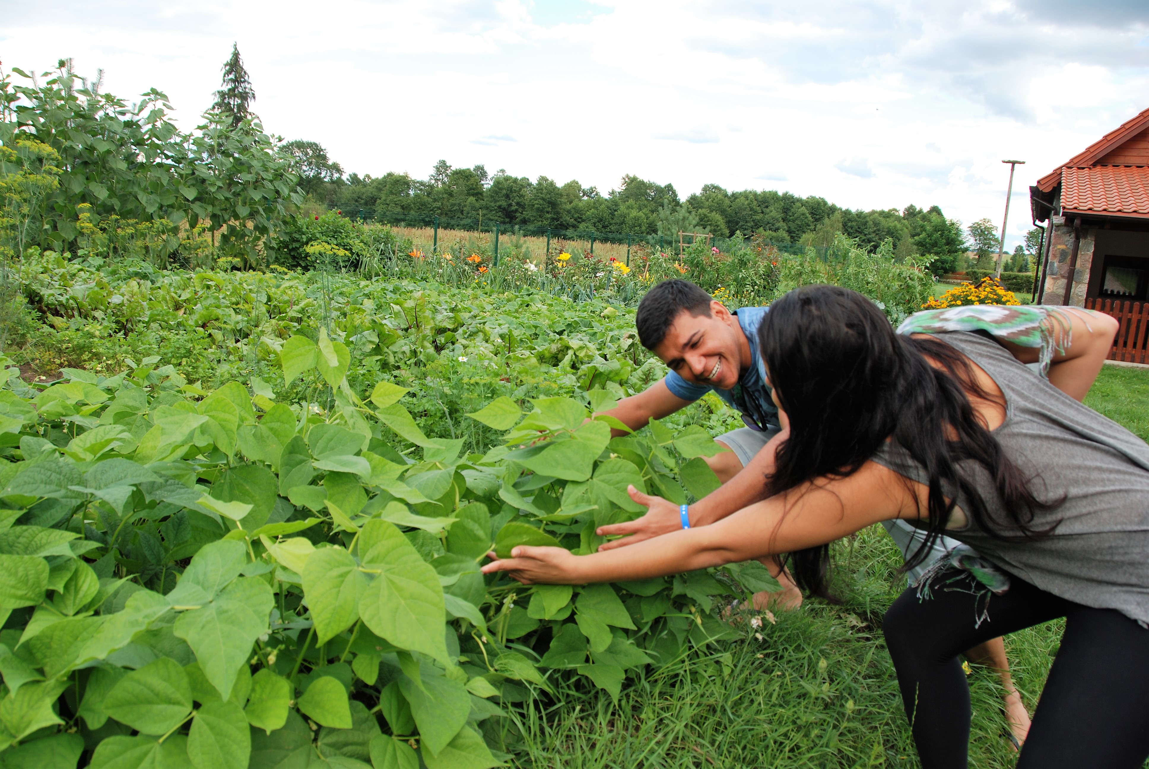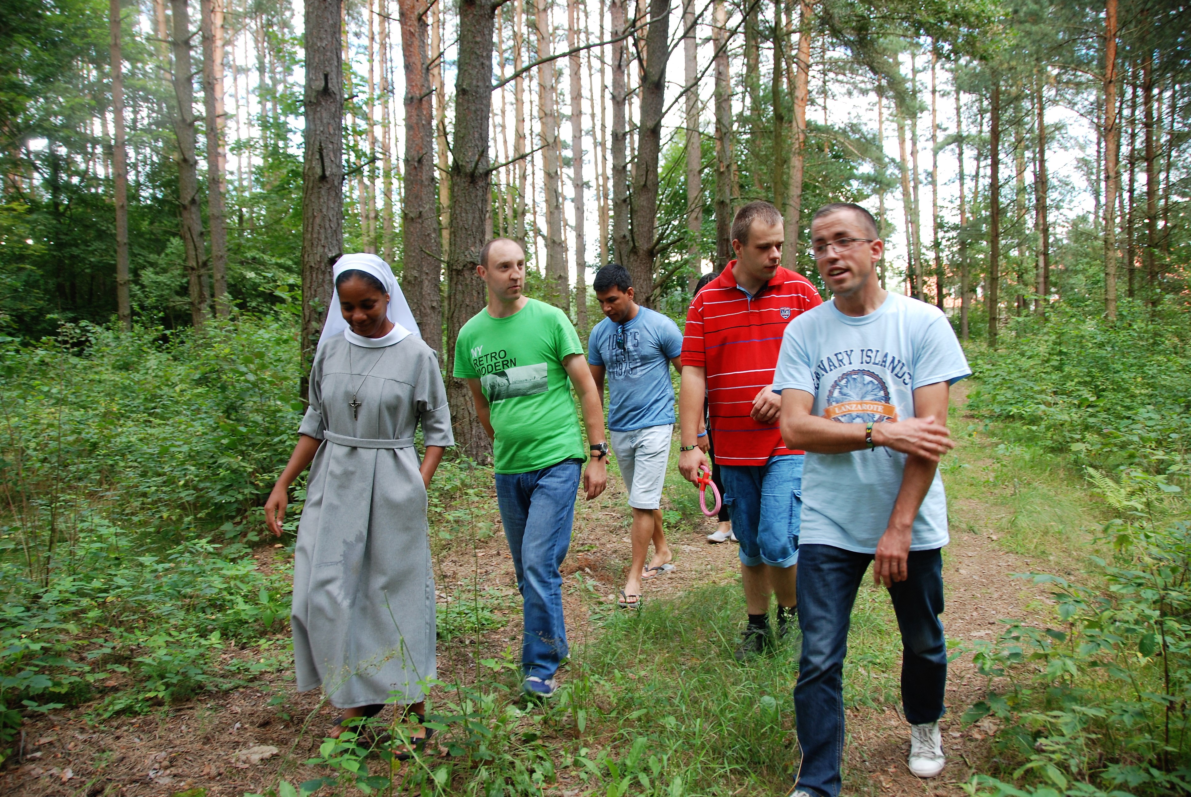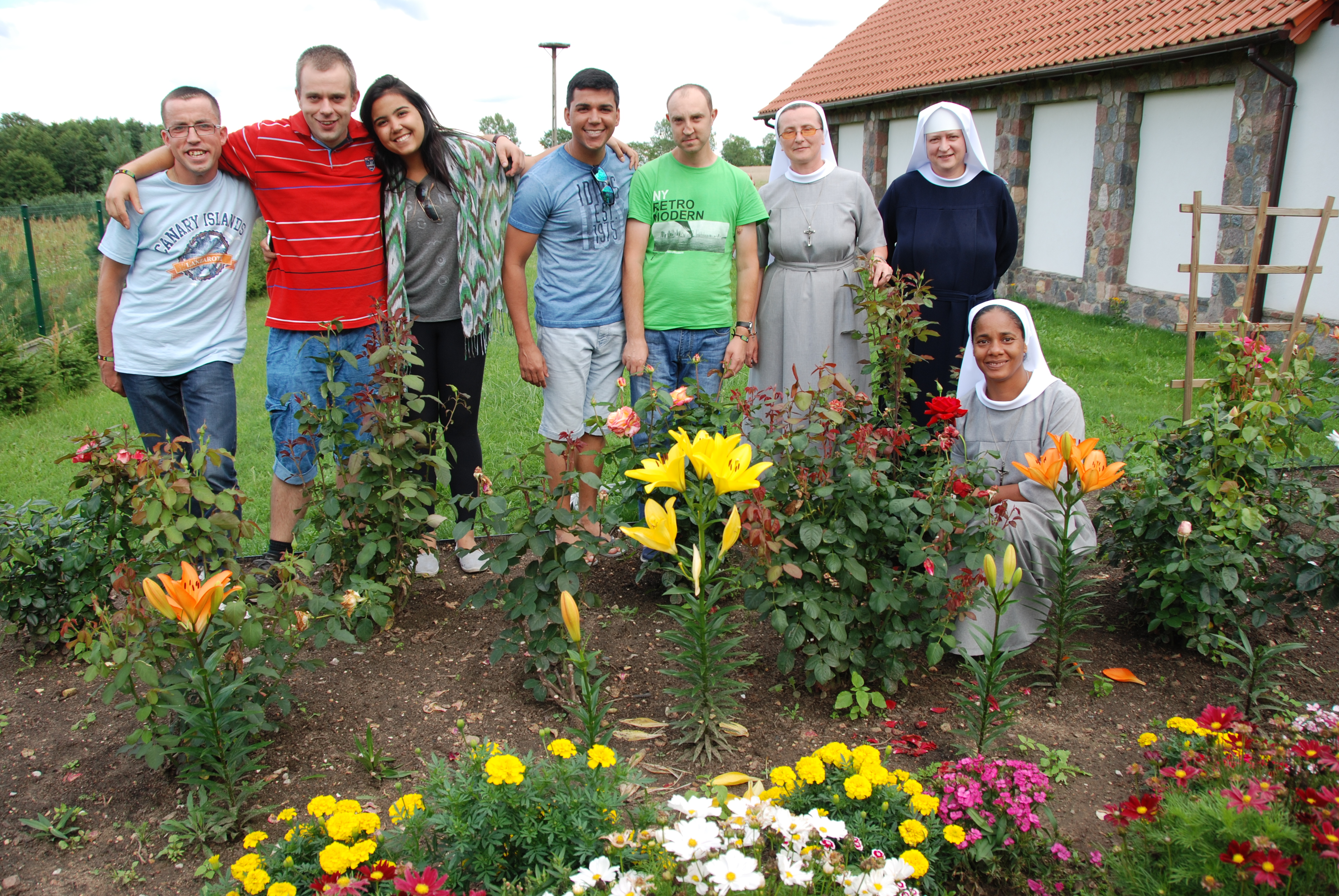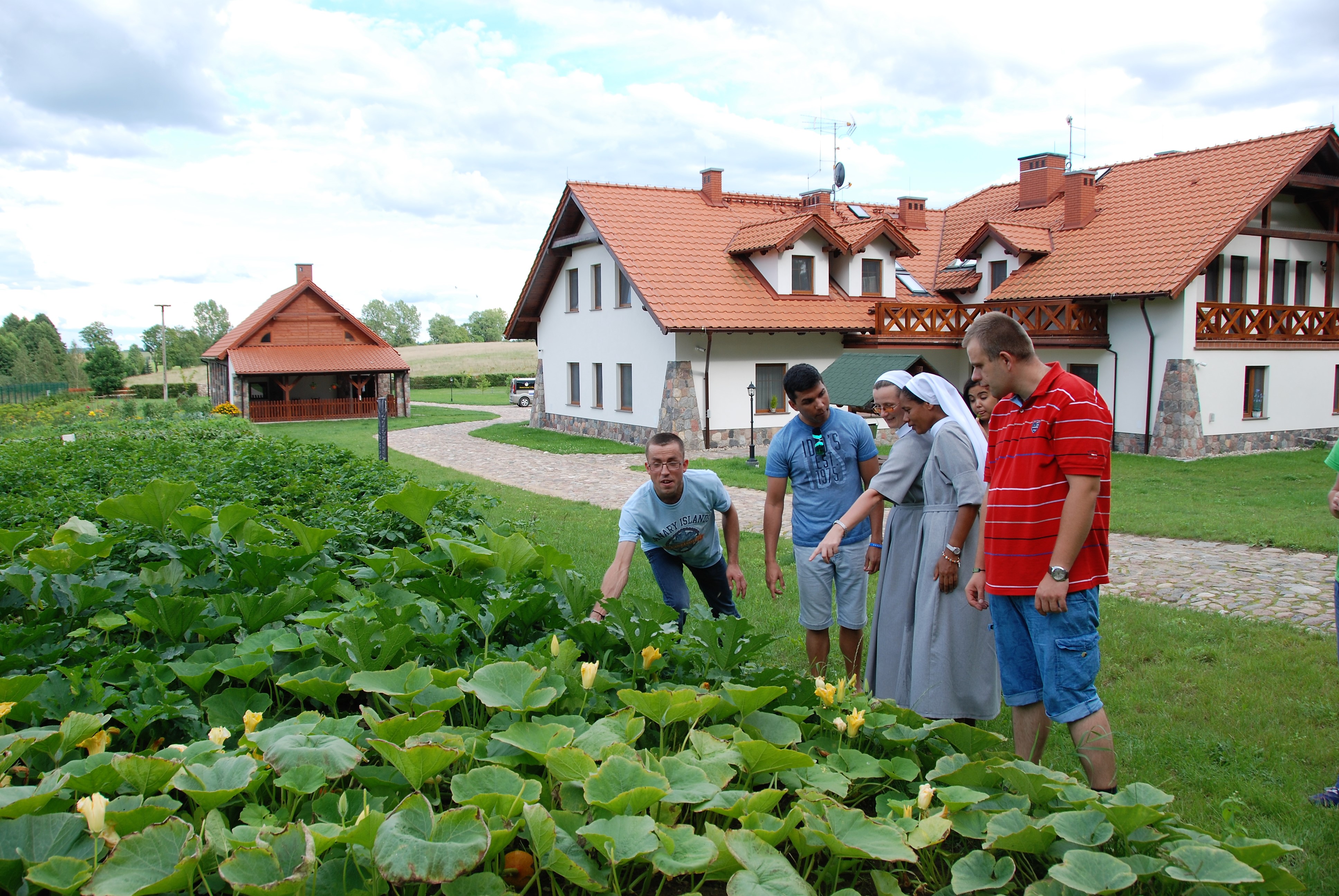 Po zakończeniu Światowych Dni Młodzieży w Krakowie przyjechali do nas goście z Brazylii. Fabiane i Nilsinho, młodzi ludzie z Queimadas w stanie Bahia, przyjechali do Polski z siostrami benedyktynkami misjonarkami, które pracują w Brazylii – S. Iloną i S. Sueli. To było spotkanie pełne żywiołowej, brazylijskiej radości i otwartości. Bariera językowa nie miała przy tym większego znaczenia. Goście podziwiali nasz ogród pełen roślin, które im wydały się egzotyczne. Najbardziej ucieszyli się na widok fasoli, która jest podstawą brazylijskiej kuchni i już za nią tęsknili 😉 W lesie najbardziej egzotyczną rośliną okazała się dla nich… pokrzywa! Serca gości podbiły też nasze psy, zwłaszcza malutkie szczenięta.