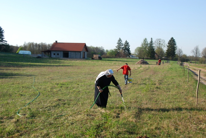 Tymczasem podlewamy posadzone w roku ubiegłym drzewka i podziwiamy wiosnę, która cudownie opromieniła otaczający farmę las.