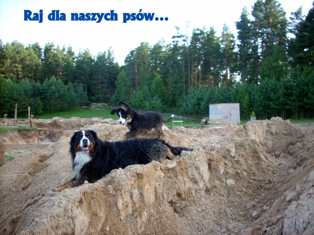 Ale farma to nie tylko budowa. Codziennie przyjeżdżamy tu z psami, które są zachwycone górami piasku i kąpielami w jeziorze.