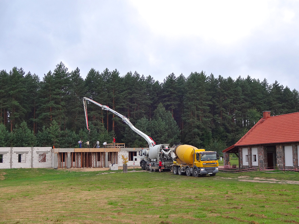 Parter budynku mieszkalnego można uznać za zbudowany!  Dziś zalano betonem strop nad jego zasadniczą częścią. Po serii upalnych dni dziś się nieco ochłodziło i pracę można było wykonać sprawnie. Do wykonania pozostał jeszcze strop nad salą kominkową.